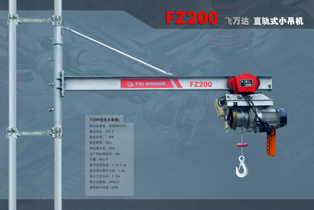直軌式小吊機(jī)產(chǎn)品介紹: 優(yōu)勢(shì)1:臂長(zhǎng)是其它小吊機(jī)的3倍 優(yōu)勢(shì)2:可在30厘米的小窗戶內(nèi)使用 優(yōu)勢(shì)3:航空專用機(jī)重量輕起重大